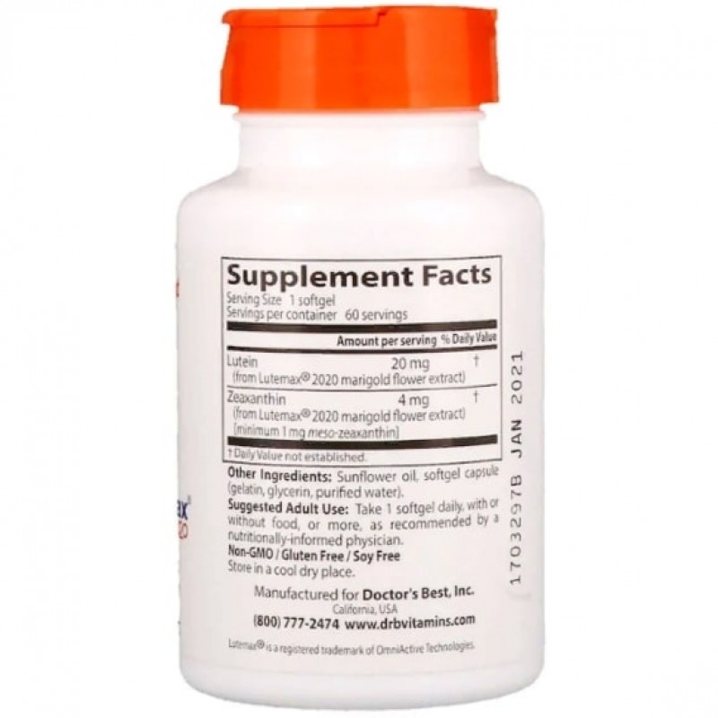 Lutemax® поставляет лютеин, зеаксантин и мезо-зеаксантин, три каротиноидных питательных вещества, которые концентрируются в глазу. Эти каротиноиды являются превосходными антиоксидантами, которые естественным образом накапливаются в сетчатке и поддерживают здоровое восприятие света и контроль бликов. Лютеин с Lutemax® помогает защитить от фотоповреждений от синего света. Синий цвет-самый опасный компонент спектра видимого света. Исследования показали, что лютеин обладает защитным действием против синего света.