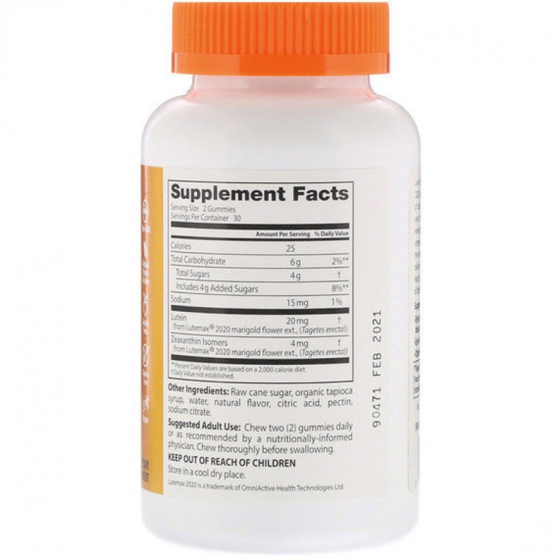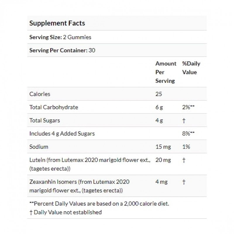 Lutein Gummies с Lutemax® 2020 содержит тщательно изученный оптимальный рацион лютеина и зеаксантина, который помогает защитить ваши глаза от вредного высокоэнергетического синего света в повседневной обстановке, включая большинство цифровых экранов, солнечный свет и освещение внутри помещений. Используя эти натуральные экстракты цветов календулы, эти вкусные жевательные конфеты являются естественным и вкусным способом сохранить здоровье ваших глаз от частого использования цифровых устройств.