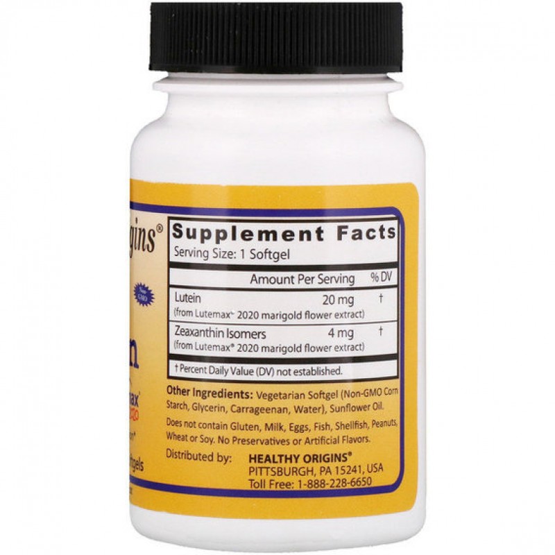 Натуральный лютеин от Healthy Origins (содержащий Lutemax 2020) ― это эффективная комбинация лютеина и R-R и R-S-изомеров зеаксантина. Это уникальное сочетание лютеина и зеаксантина играет важнейшую роль в снабжении жёлтого пятна сетчатки жизненно важными защитными питательными элементами, которые отвечают за поддержания остроты зрения в процессе старения.