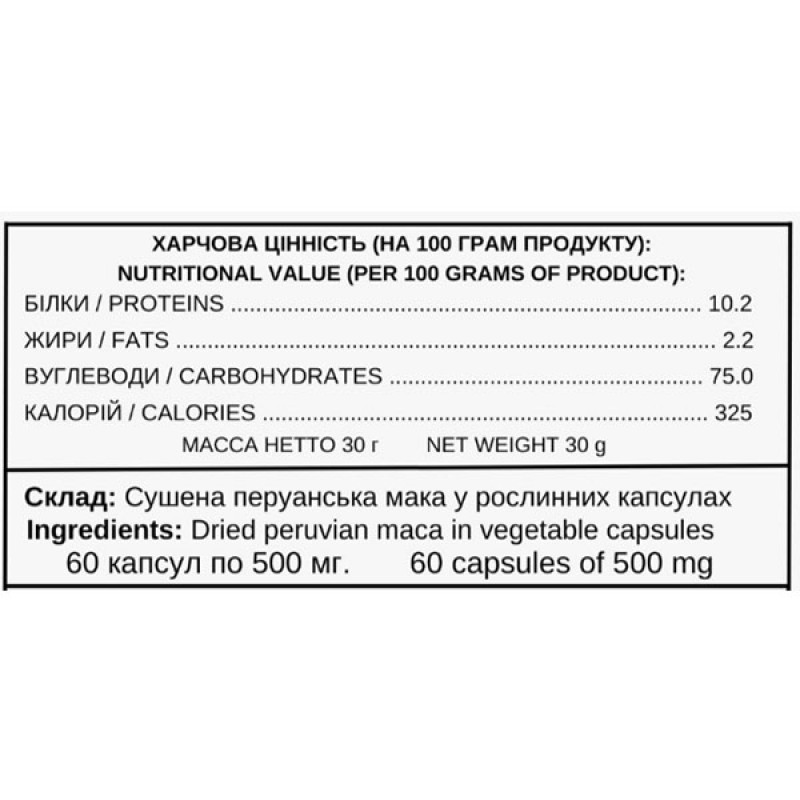 Корень Маки содержит уникальные биоактивные соединения, такие как глюкозинолаты и макамиды, влияющие на гормональную систему, помогая поддерживать баланс. Высокое содержание витаминов группы B, железа и магния способствует уменьшению усталости и повышению энергии. Мака также действует как антиоксидант, защищая клетки от повреждений.