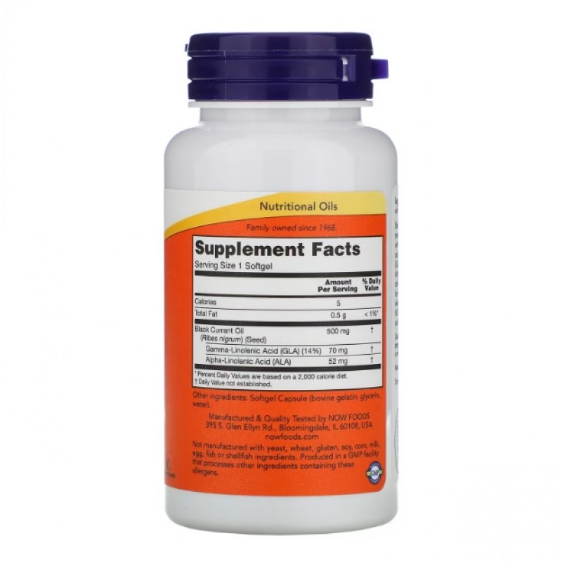 Black Currant Oil 500 от Now Foods - нормализует баланс холестерина в крови, поддержит здоровье сердечно-сосудистой и нервной систем, повысит общий энергетический потенциал