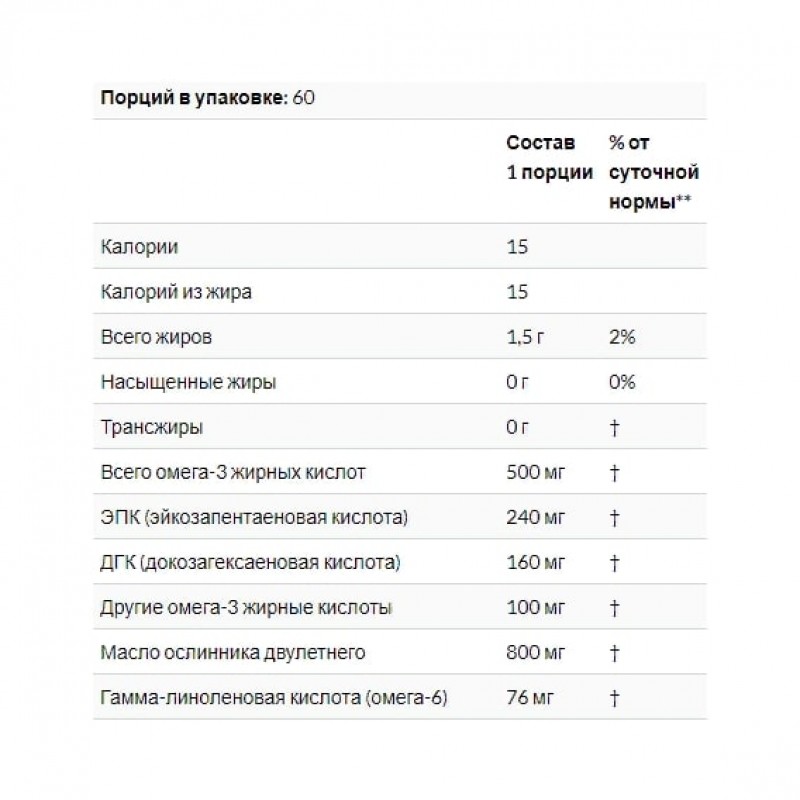 - 500 мг омега-3 жирных кислот и 76 мг ГЛК