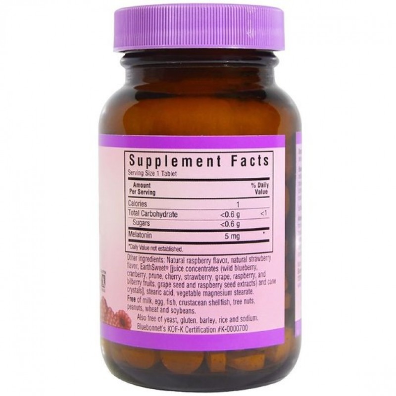 Мелатонин - это гормон, который вырабатывается шишковидной железой в нашем мозгу. Именно он отвечает за наши внутренние биологические часы, а значит и за здоровый сон. Bluebonnet подсластили данный продукт натуральной смесью концентратов соков и кристаллов тростника.