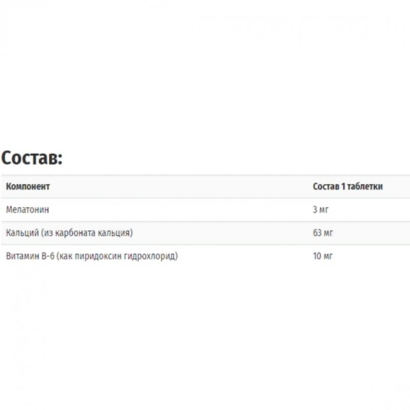 Мелатонин помогает упорядочить нормальный суточный режим, чем способствует спокойствию, расслаблению и общему укреплению здоровья. Также в состав добавки входит витамин B6, который необходим для естественного производства мелатонина организмом.