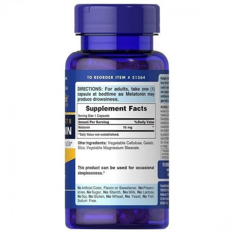 Добавка содержит 10 мг мелатонина в каждой капсуле. Принимать ее следует 1 раз в день – за полчаса до сна – 1 капсулу.