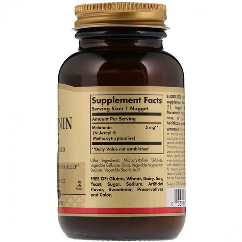 Мелатонин Solgar в таблетках по 5 мг является потрясающим выбором для людей, периодически страдающих бессонницей, людей с синдромом смены часовых поясов или всех, кто хочет установить здоровый, крепкий сон. Этот продукт работает с вашим естественным циклом сна и обеспечивает спокойный отдых, которого вы заслуживаете. Вы проснетесь бодрым и с восстановленными силами.