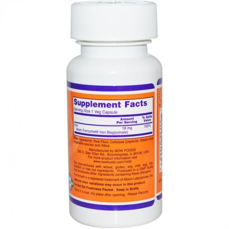 Железо — это важный минерал, имеющий ключевое значение в процессах выработки энергии, работе иммунной и нервной систем. Железо — это важнейший компонент гемоглобина, молекулы, переносящей кислород к клеткам тела, а также миоглобина, который связывает кислород в мышечной ткани. NOW использует бисглицинат железа, так как по данным клинических исследований он лучше усваивается, а также хорошо переносится, так как он мягко воздействует на организм и не вызывает запоров.