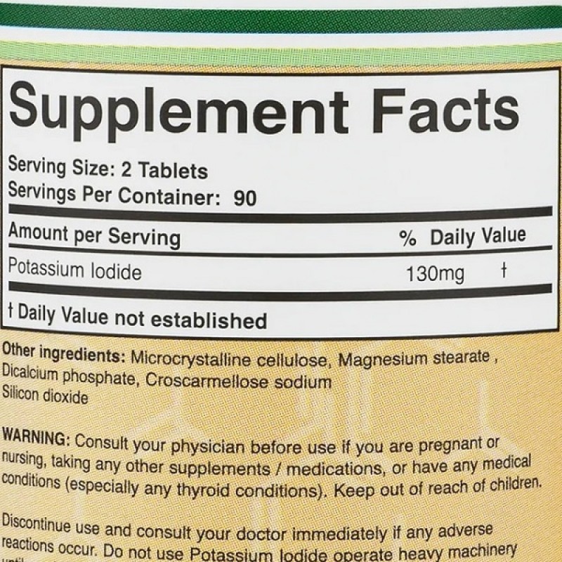 В чрезвычайных ситуациях или по указаниям органов здравоохранения мы рекомендуем принимать 130 мг (2 таблетки) в день лицам старше 18 лет или весом более 150 фунтов. Лицам моложе 18 лет и весом менее 150 фунтов следует принимать 65 мг (1 таблетку) в день. Йодид калия предназначен только для кратковременного применения, а ежедневное применение не рекомендуется дольше 2 недель.