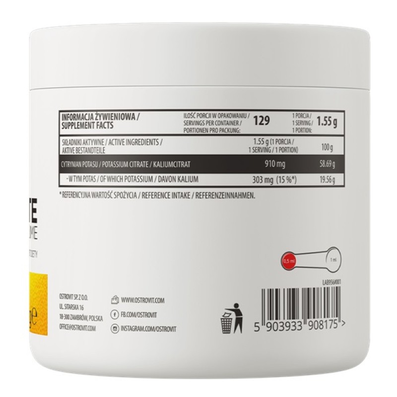 OstroVit Potassium Citrate - это порошкообразная пищевая добавка, содержащая калий в форме цитрата калия со вкусом лимона и лайма. Регулярное употребление калия способствует правильному функционированию многих внутренних систем, а также поддерживает водно-электролитный баланс организма.