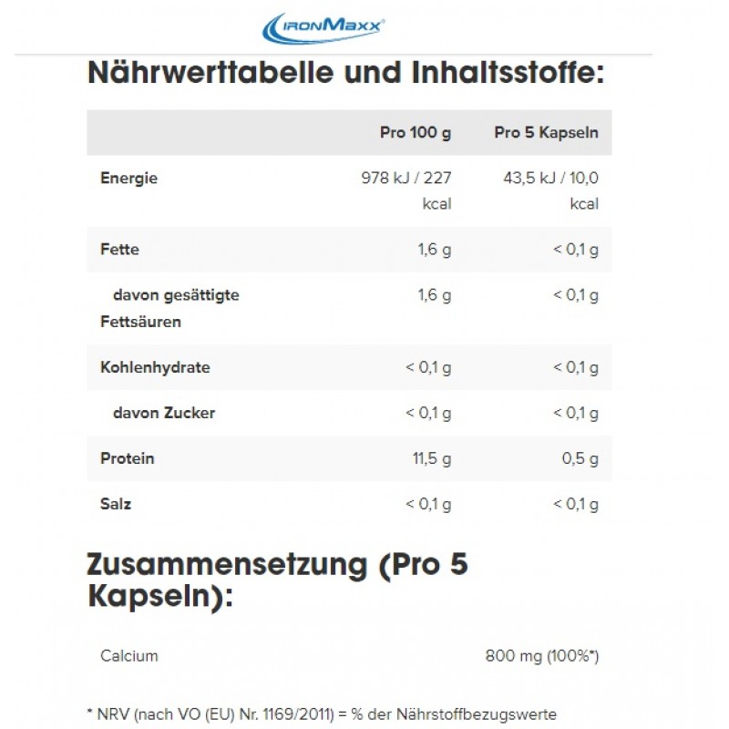 В отличие от традиционно используемого кальция карбоната капсулы IronMaxx Calcium Bioactive содержат ценный три-кальцийцитрат, который значительно лучше перерабатывается человеческим организмом.