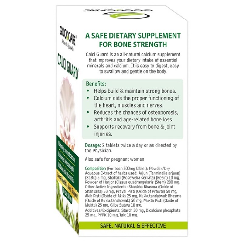 Calci Guard помогает улучшить питание организма и увеличить усвоение важных питательных веществ из пищи, чтобы поддерживать активные функции организма. Кальций является важным питательным веществом для укрепления костей и сердечной мышцы. Это важный элемент для легкого пищеварения, снижения частоты пульса, контроля уровня сахара в крови и т. д. Кроме того, кальций также полезен для зубов.