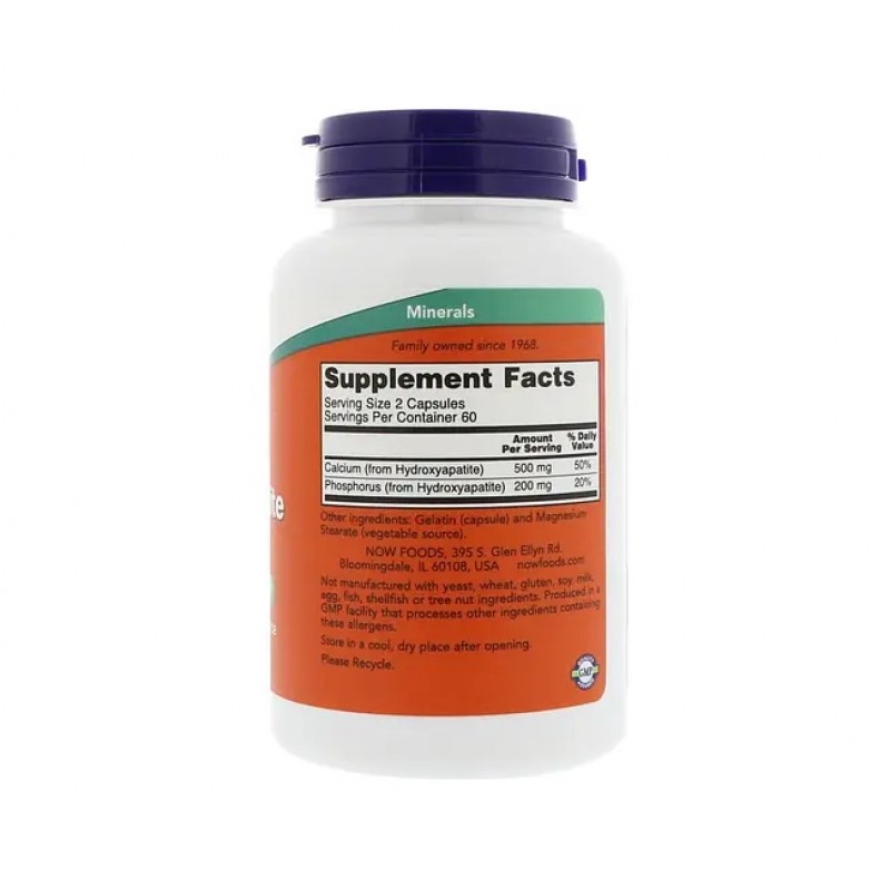 Гидроксиапатит кальция NOW производится естественным путем из австралийского сертифицированного молодняка крупного рогатого скота, не содержащего коровьего бешенства. Это хорошо усваиваемый источник микрокристаллического гидроксиапатита (MCHA), который включает кальций, фосфор, магний, белок, минералы и аминокислоты, обычно присутствующие в костной ткани. Кальций и фосфор необходимы для формирования здоровых костей; однако также важны дополнительные минералы и аминокислоты. Гидроксиапатит кальция NOW является биодоступным источником диетического кальция вместе с другими питательными веществами, которые помогают поддерживать здоровую структуру и функцию костей.