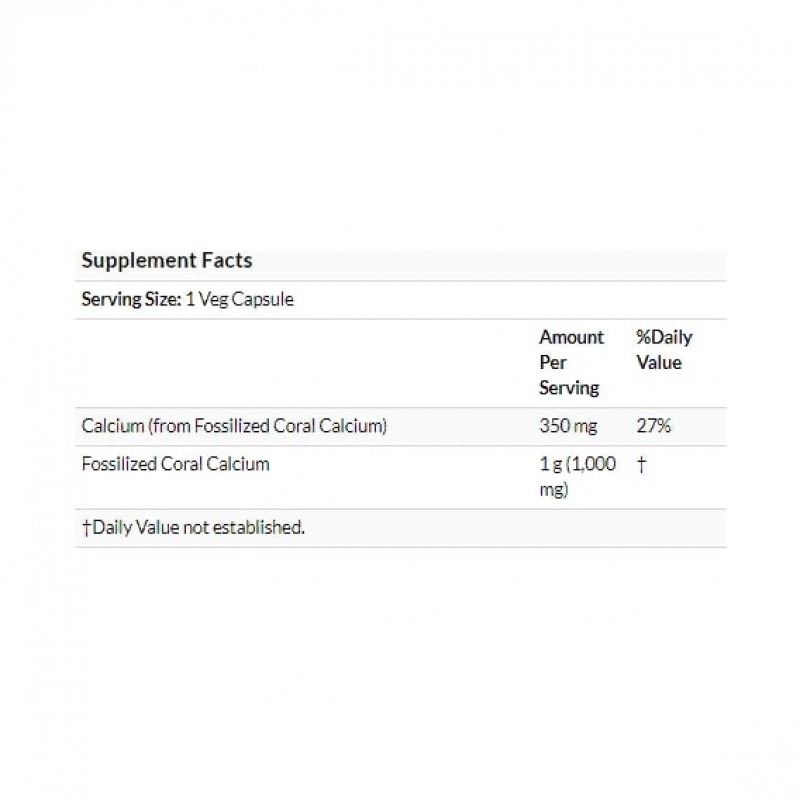 Коралловый кальций содержит в основном щелочную форму кальция - карбонат кальция. Он также является богатым источником, по крайней мере, 74 естественно сбалансированных органических коралловых минералов (калий, фосфор, магний, железо, сера, кремний, хром, марганец, медь, цинк и другие).