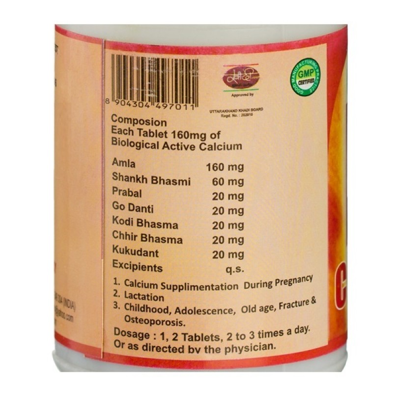 Каждая таблетка препарата Кальций Шри Ганга содержит 160 мг биологически активного кальция, помимо его таблетки содержат порошок из плодов растения амла (Эмбилика лекарственная), самого богатого источника растительного витамина C, который помогает кальцию лучше усваиваться в организме человека.
