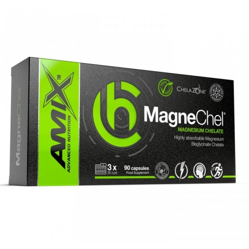 Магниевые капсулы Amix ChelaZone MagneChel - это пищевая добавка, состоящая из 100% бисглицината магния в хелатной форме ChelaZone в растительных капсулах V-Caps Plus. Благодаря хелатной форме мы можем потреблять магний в его наиболее биодоступной форме, что обеспечивает очень высокое усвоение этого минерала. Хелатные минералы в ChelaZone - это минералы в естественной форме для человеческого организма поэтому всасывание происходит легко и быстро, что положительно сказывается на работе всего организма от пользы, которые приносит нам минерал, делая его особенно эффективным.