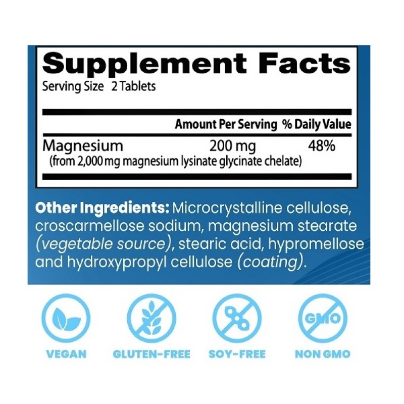 Магний является важным диетическим минералом, который играет много важных ролей, которые включают в себя: помогая клеткам производить метаболическую энергию, поддерживая оптимальную нервную функцию, помогая мышцам правильно расслабиться и поддерживать здоровое сердцебиение. Было показано, что лизин и Глисин являются эффективными носителями минералов, которые облегчают всасывание в кишечном тракте.