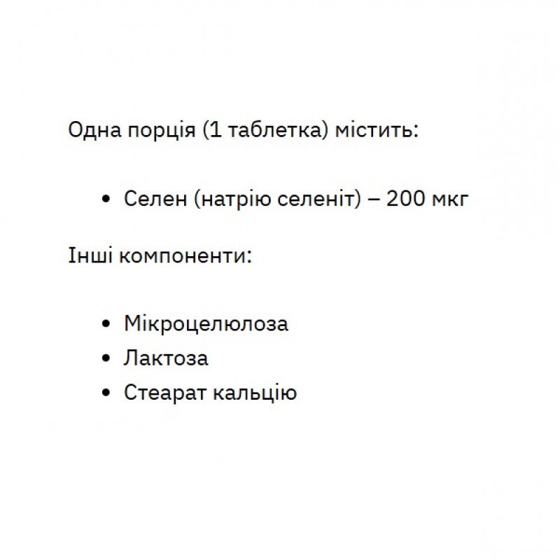 - Селен - 200 мкг (натрия селенит).