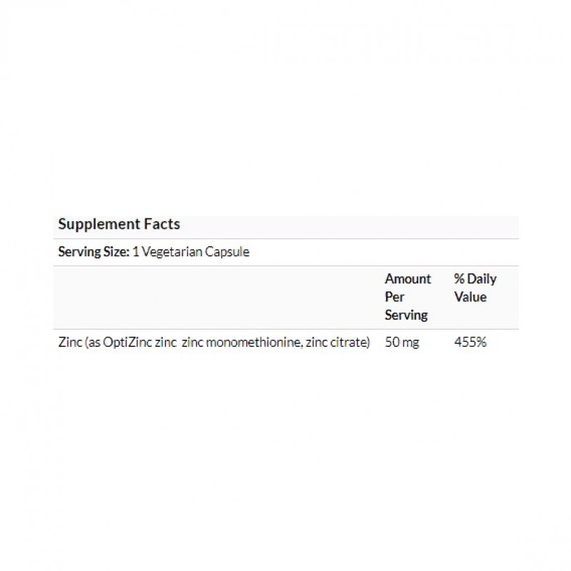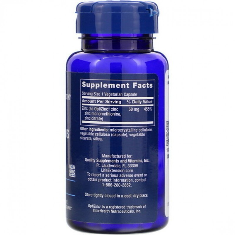 Компания Life Extension разработала недорогую формулу, которая сочетает в себе стабильную, повышенную биодоступность OptiZinc с цитратом цинка для обеспечения организма эффективной 50-ти миллиграммовой дозой цинка в одной капсуле. OptiZinc — это превосходная биодоступная форма цинка. Он усваивается легче, чем обычный цинк, поскольку он состоит из одной из самых усваиваемых форм цинка — метионата цинка (метионина).