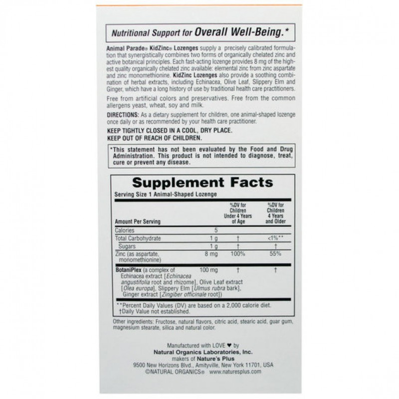 Цинк поддерживает иммунную систему сильной, помогает залечить раны и нормализирует общее функционирование организма. Он также необходим для нормальной функции скелетной, неврологической и эндокринной систем. Известно также, что он играет важную роль в защите организма от окислительных процессов и особенно полезен для поддержания здорового развития организма.