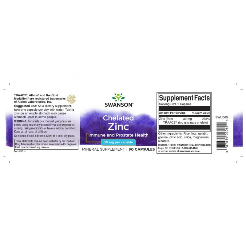 Состав 1 капсулы: Цинк (из хелата глицината цинка) 30 мг