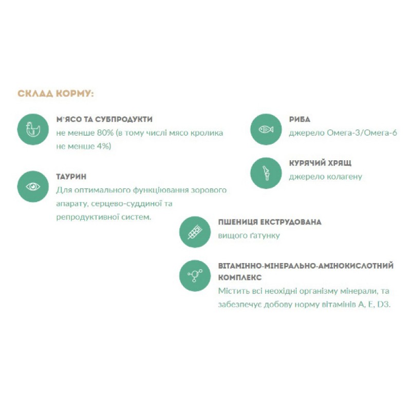 Влажный корм торговой марки "Miss Kis" кролик в соусе - специально разработанный рецепт который содержит сбалансированную комбинацию витаминов, минералов и микроэлементов, поддерживает на должном уровне иммунную систему кошки, учитывая все ее физиологические потребности. Содержит в своей основе мясо кролика и субпродукты животного происхождения не менее 80%.