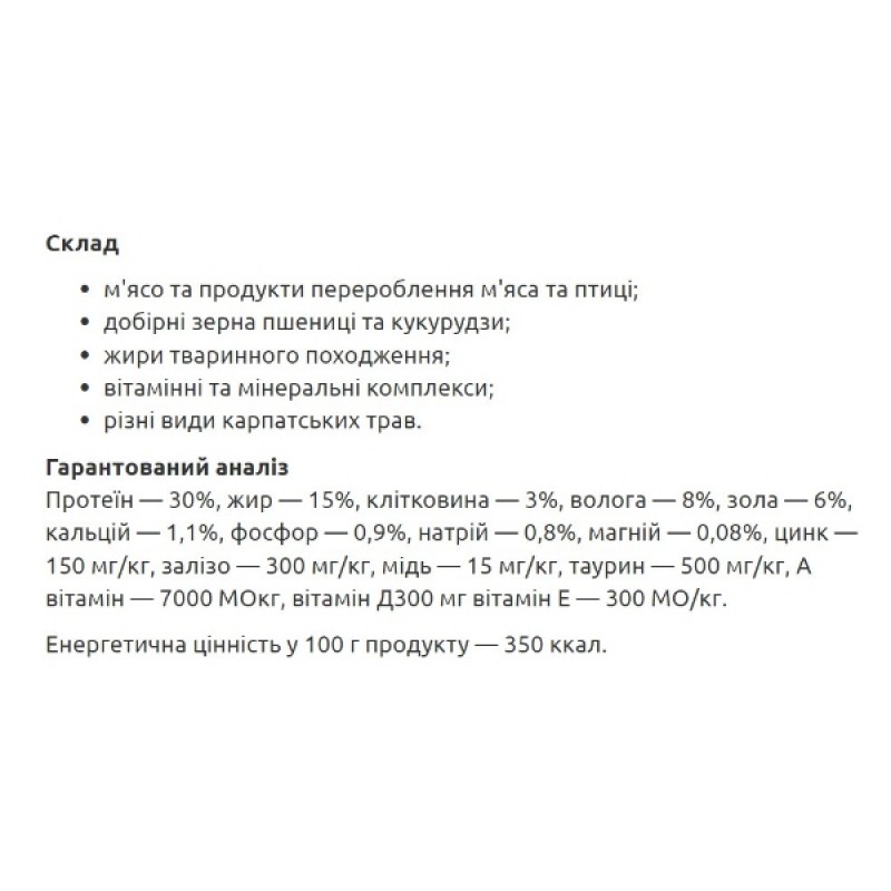 Какие карпатские травы содержит корм?