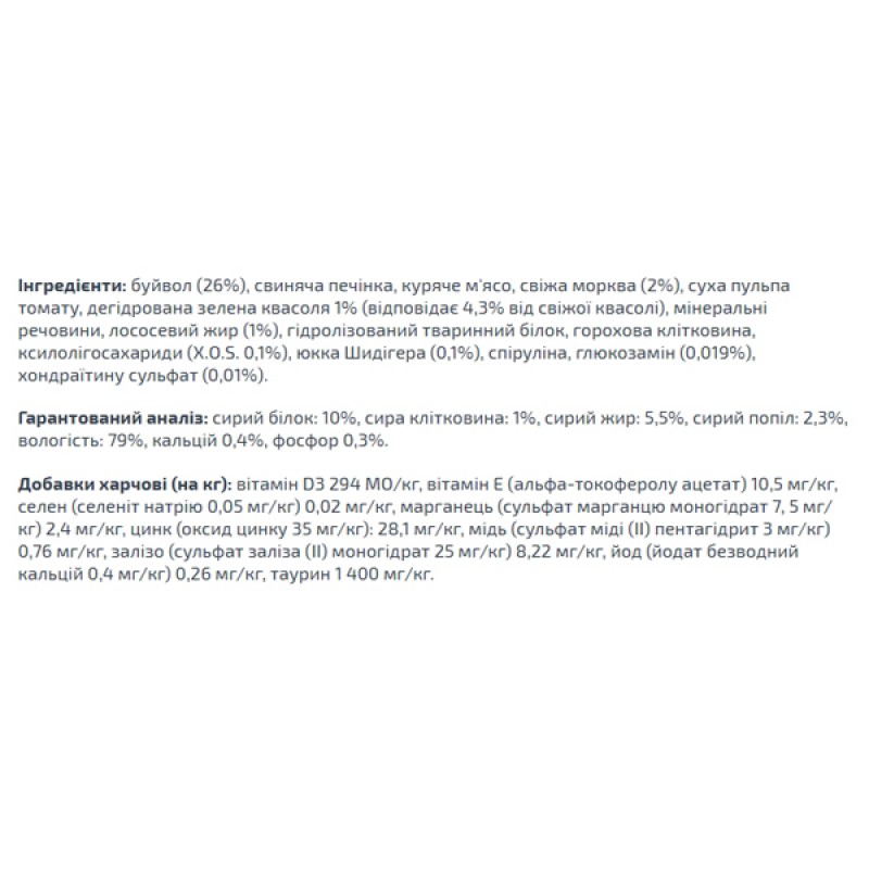 - Состав паштета дополнен компонентами, которые важны для поддержания суставов, прочности костей и всего опорно-двигательного аппарата для подрастающих животных;
