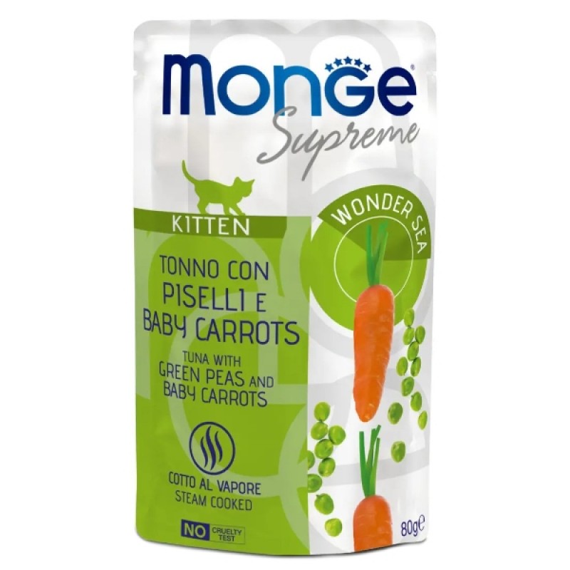 Monge Supreme Kitten Tuna с горошком и молодой морковью - сбалансированный корм для растущих котят.