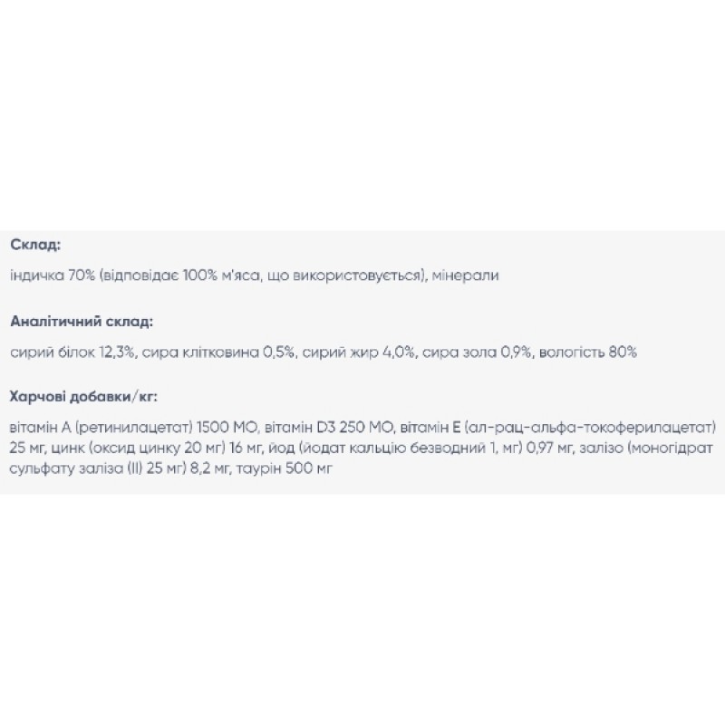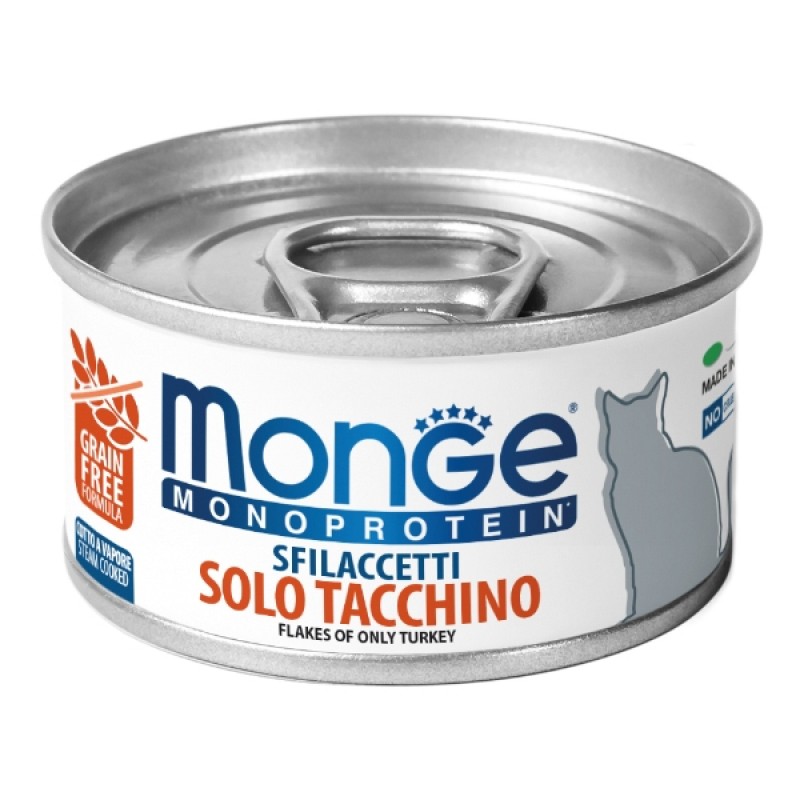 Консервы Monge Monoprotein из мяса индейки готовят только из свежих ингредиентов, которые проходят проверку на соответствие тем же стандартам качества, что и пищевая продукция для людей. Более того, эти мясные хлопья приготовлены на пару, поэтому сохраняются мягкая текстура и аромат натурального мяса. Благодаря целому ряду добавок и витаминов, этот корм не только порадует вашу кошку вкусным мясом, но и принесет пользу организму животного.