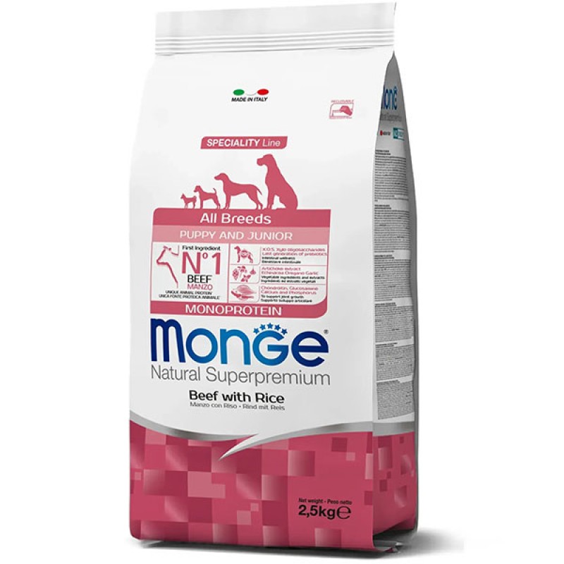 MONGE SPECIALITY LINE PUPPY & JUNIOR это полноценный сбалансированный рацион для щенков всех пород. Оптимален для собак, склонных к аллергическим воспалительным реакциям. Корм содержит пробиотики, что способствует улучшению процесса пищеварения. Не содержит консервантов и искусственных красителей. Включение в состав экстракта Юки Шидигера помогает снизить неприятный запах фекалий.