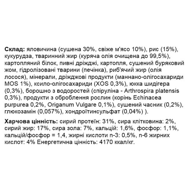 - Глюкозамин, хондроитин, кальций и фосфор для здоровья суставов. Эти вещества в составе корма способствуют формированию здоровой хрящевой ткани и развитию опорно-двигательного аппарата.