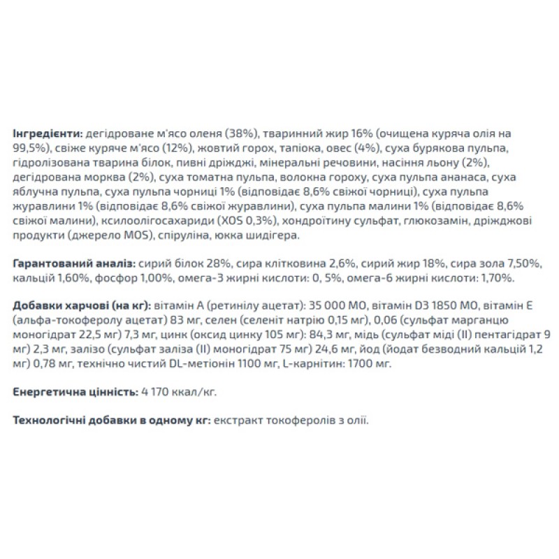 - Оптимальная формула с комплексом полиненасыщенных кислот Омега поддерживает хорошее состояние меха и кожи животного;