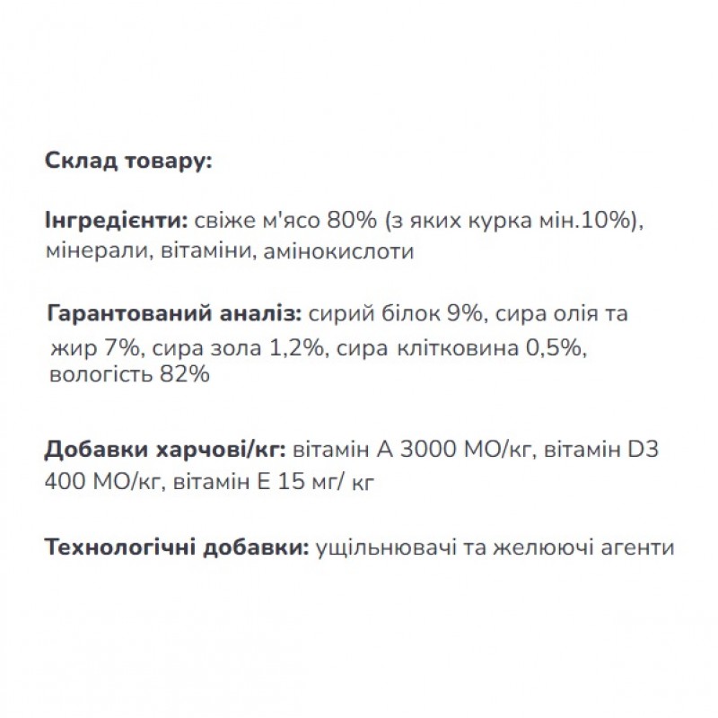 - изготовлен из высококачественного итальянского мяса и имеет высокую усвояемость.