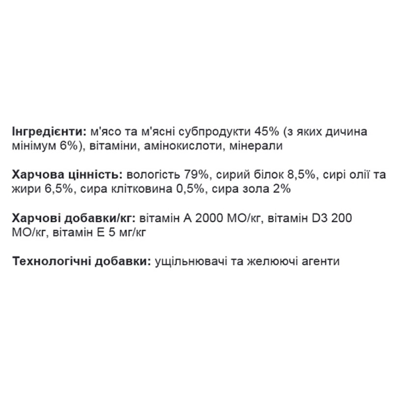 - полноценный, сбалансированный влажный корм, специально разработанный для ежедневного кормления.