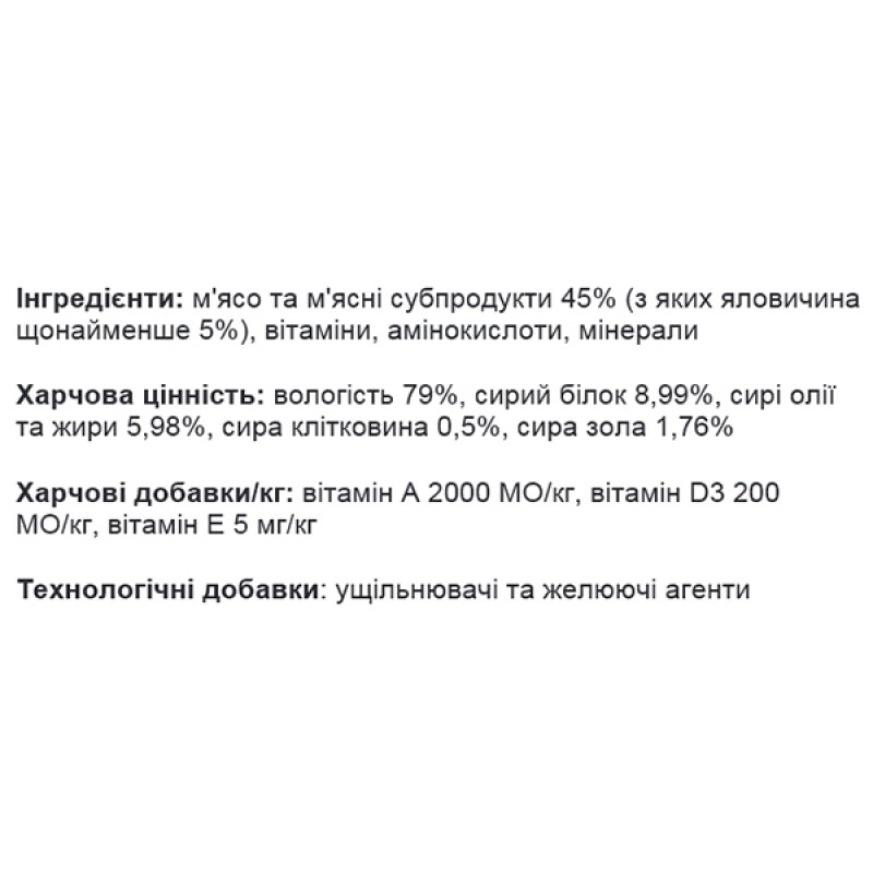 - полноценный, сбалансированный влажный корм, специально разработанный для ежедневного кормления.