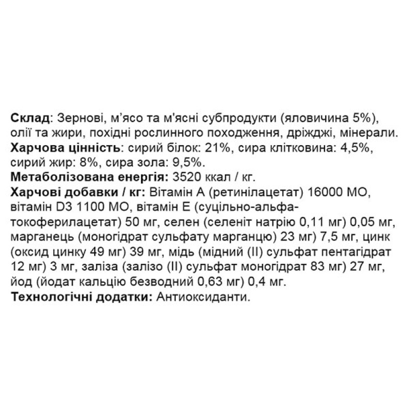 - Если этот продукт заменяет другой тип корма и/или диеты, рекомендуется вводить его постепенно в течение минимум одной недели.