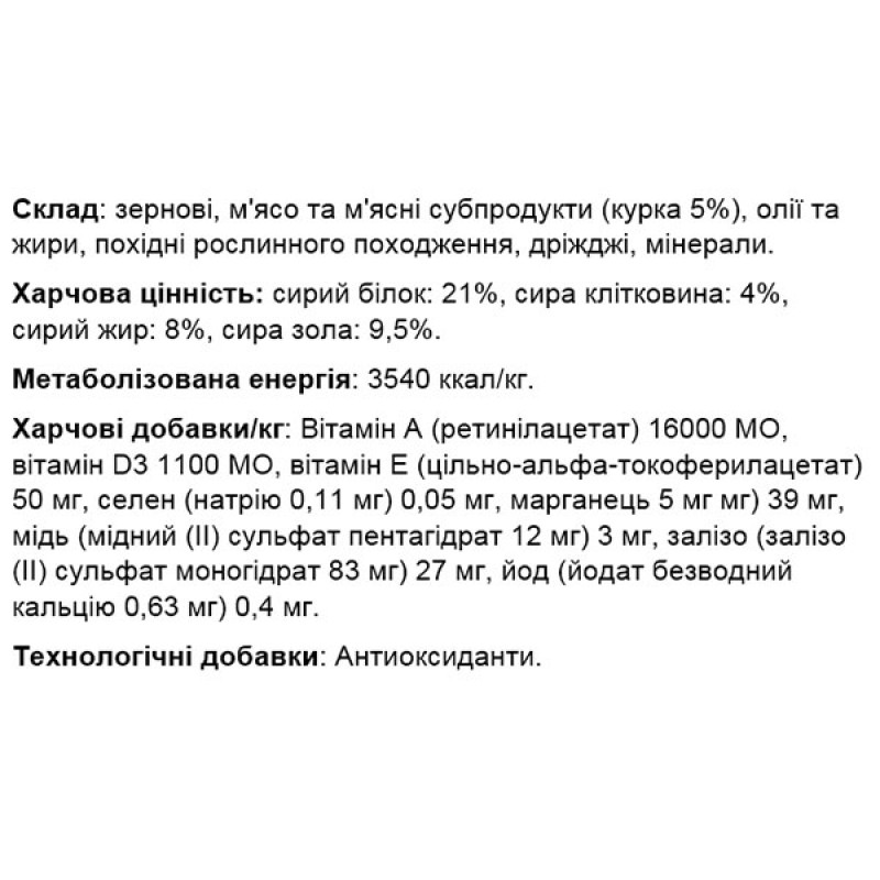 - Если этот продукт заменяет другой тип корма и/или диеты, рекомендуется вводить его постепенно в течение минимум одной недели.