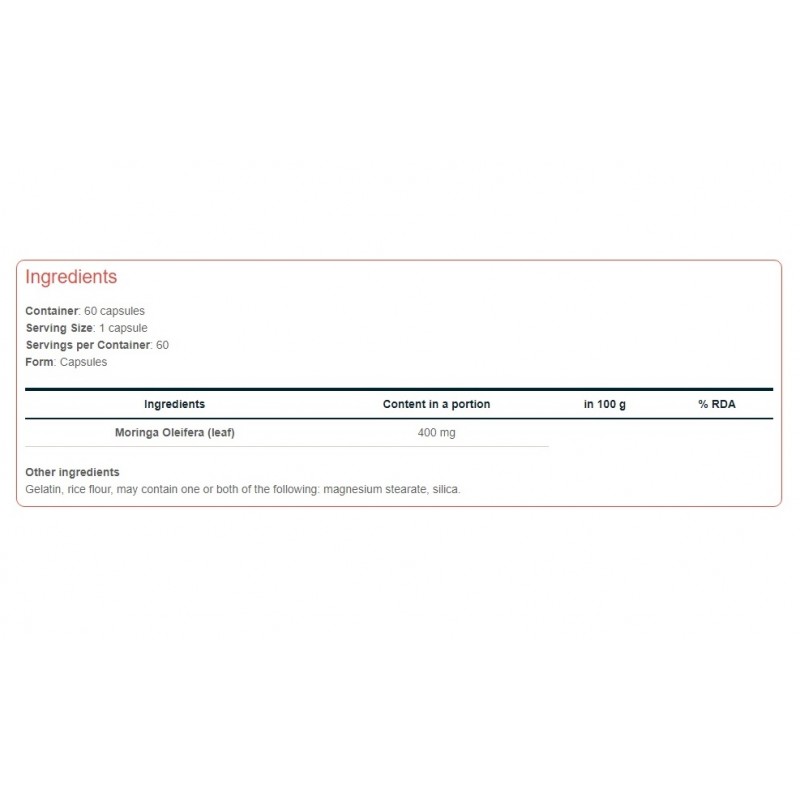 | Лист Моринга (Moringa oleifera) | 400 мг | * |