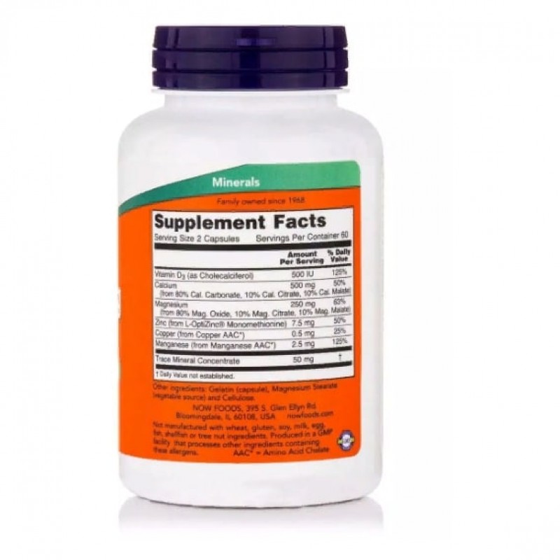 Формула кальция и магния от компании Now Foods усиленна хелатными формами меди, цинка и марганца, что способствует метаболизму костной ткани. Витамин D способствует лучшему усвоению кальция. Данный препарат рекомендуется для приема людям, которые хотят укрепить костную систему. Так же комплекс подойдет для тех, кто хочет ускорить заживления трещин или переломов.