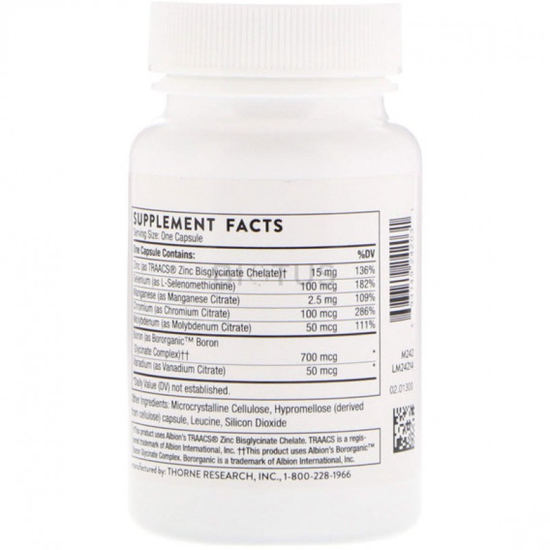 Trace Minerals содержит кофакторы в многочисленных ферментативных реакциях. Они необходимы для правильной работы гормонов и нейромедиаторов. Thorne Trace Minerals разработан для оптимальной впитываемости.