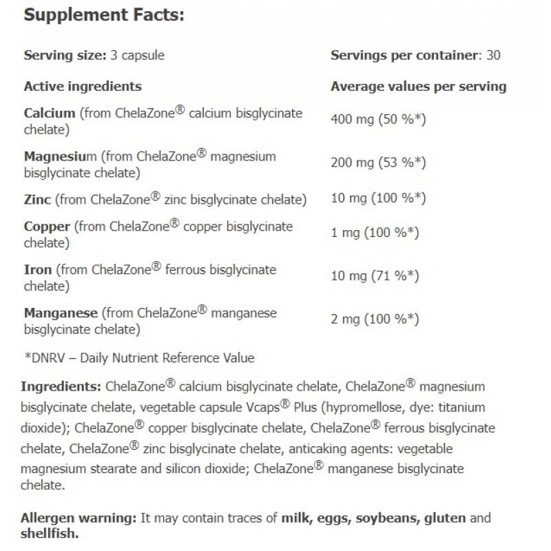 MultiChel® Complete -6 – это пищевая добавка со 100% содержанием хелатной формы минералов с очень высокой биодоступностью и усвояемостью в растительной капсуле V- Caps® Plus. Минеральные хелаты ChelaZone ® являются естественной формой минералов для человеческого организма. Мультиминеральный комплекс для лучшего поддержания нормального здоровья костей, зубов, кожи, ногтей. Для нормального энергетического обмена, нормального функционирования нервной системы и защиты клеток от окислительный стресс. Для снижения усталости и утомления. Они очень легко и быстро усваиваются, положительно влияют на общее удобство использования минерала и особенно на его эффективность.