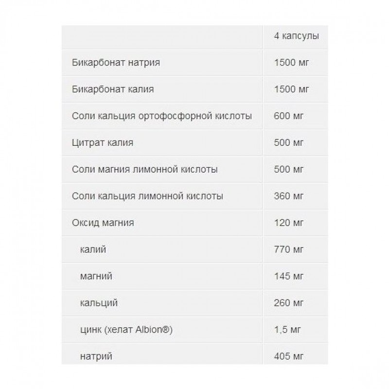 - Соли натрия и калия с бикарбонатом;