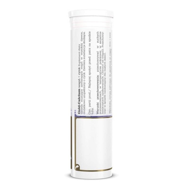 Gold-Calcium Calcium + Zinc - это пищевая добавка в форме шипучих таблеток, содержащих высокие дозы кальция, дополнительно с добавлением цинка в виде хорошо усваиваемого аминокислотного хелата ALBION® (бисглицинат цинка).Научные исследования доказали, что кальций:
