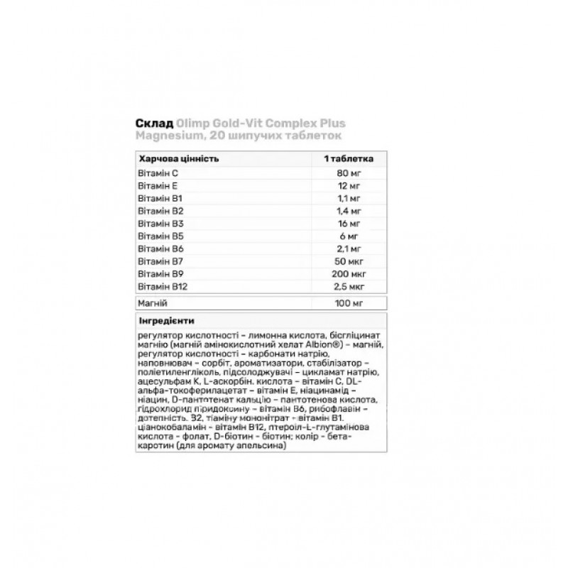 Витамины и минералы являются базой для полноценного функционирования человеческого организма. Как только возникает их дефицит, это неизбежно сказывается на физическом или эмоциональном здоровье.Важно не допускать этого, а в качестве профилактики включить в рацион Gold Vit complex + Magnesium от польского производителя Olimp Nutrition (Олимп).