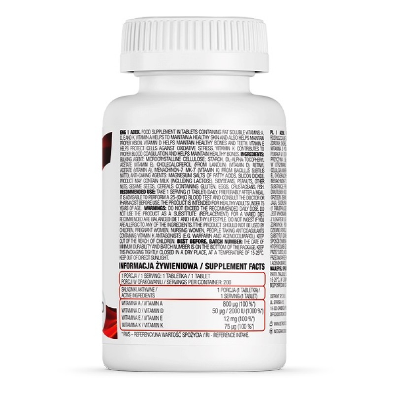 OstroVit ADEK - диетическая добавка в таблетках, содержащих жирорастворимые витамины A, D, E и K.