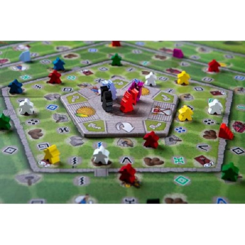 В наборе вы встретите миплов пяти цветов, но это не значит, что один вид обязательно будет вашим. Нет, они общие, а их цвет влияет на несколько особенностей во время выполнения действий. Во-первых, каждый рабочий владеет каким-то интересным свойством, что позволяет более эффективно его использовать при определенных условиях. А во-вторых – за каждого соседнего человечка такого же цвета вы получаете дополнительные действия. Вы их будете отправлять на одно из 85 мест на великом холме. Каждое окружено вариантами того, что вы можете получить или сделать за ход. Таким образом вы сможете насобирать большее количество действий, если отправите своего подчиненного в правильное место. Как мы и говорили, вариативность тут просто огромная.