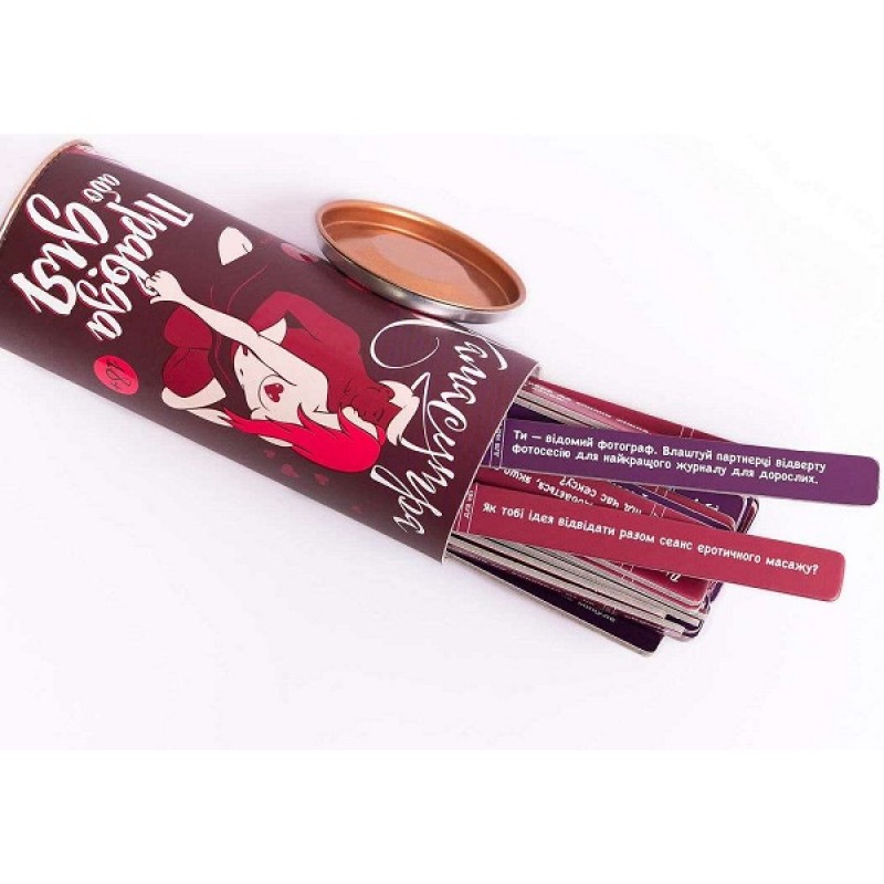 Камасутра – это индийский трактат о любви, собственно, о её постельной части, поэтому вопросы и действия в «Правда или Дело: Камасутра» носят ярко выраженный эротический характер. Для пар, коротые готовы отправиться в эту яркую авантюру и лучше узнать друг дружку. Прекрасный способ тематически провести не только День Валентина, но и любой другой вечер тет-а-тет.