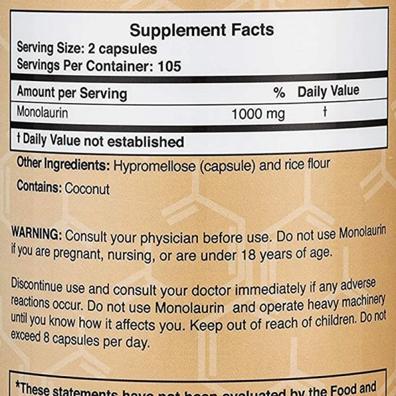 Этот продукт содержит 500 мг монолаурина для лечения и профилактики вирусных и бактериальных инфекций.