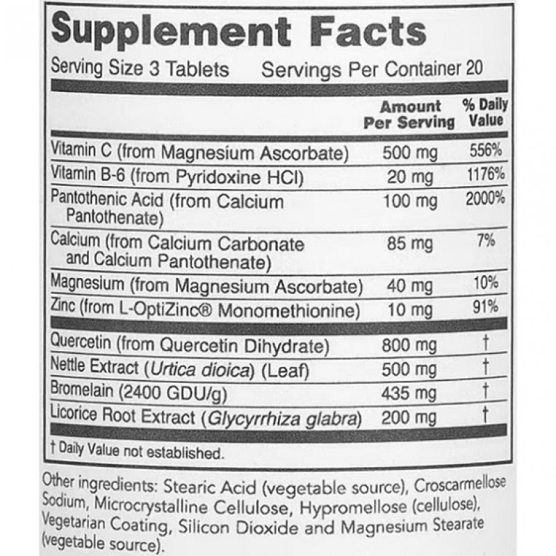 Поддержка иммунитета и дыхательной функции (Aller-All Immune System Support) легко растворяется, чтобы освежить дыхание и сохранить здоровье полости рта. Кверцетин является «защитником» мембраны клеток от действия свободных радикалов, укрепляет стенки мелких сосудов (капилляров), поэтому применяется в профилактике сердечно-сосудистых заболеваний, обладает выраженным антиаллергическим действием (препятствует выработке гистамина и серотонина). Он применяется при артритах, астме (способствует нормальной дыхательной функции) и других воспалительных заболеваниях. Активно борется с вирусными инфекциями, укрепляя иммунную систему.