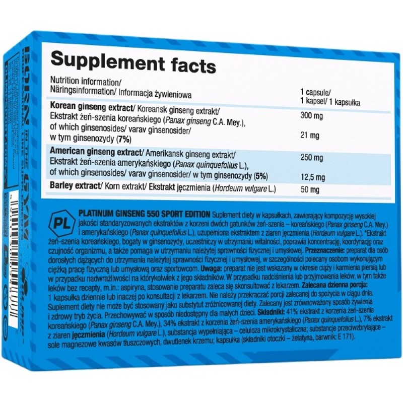 Platinum Ginseng Sport Edition – спортивная добавка с высоким содержанием женьшеня. Полезные свойства корня женьшеня известны еще с древних времен. Имея естественное возбуждающее действие, он прибавляет жизненных сил, укрепляет организм и отдаляет приближение усталости.